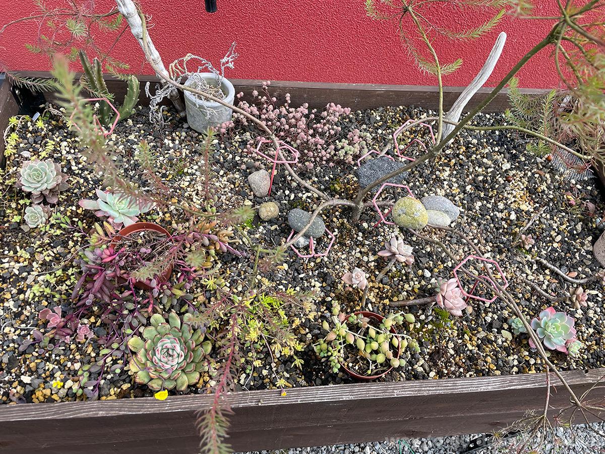 お外の多肉の箱庭が可愛すぎました。わたしもこういうのベランダでやろかな。